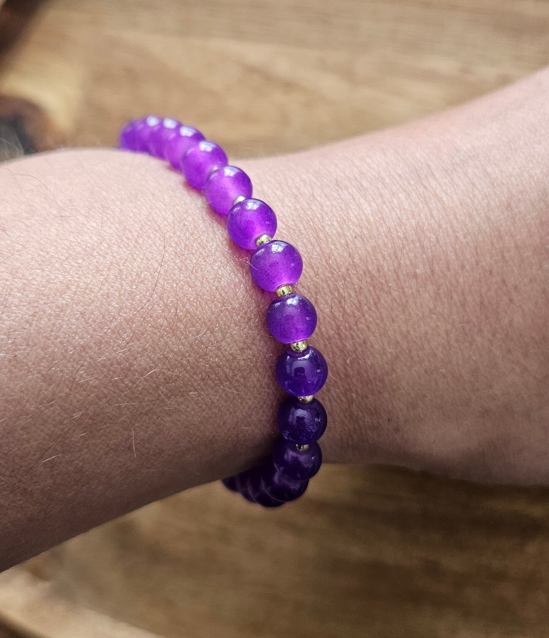Bracelet en perles de verre 6mm coloris violet, profond et lumineux.