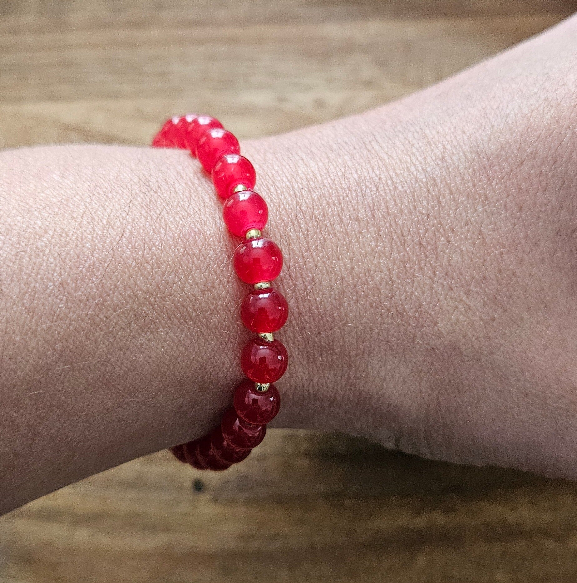 Bracelet perles 6mm rouge vif – bijou coloré et lumineux Maïperles