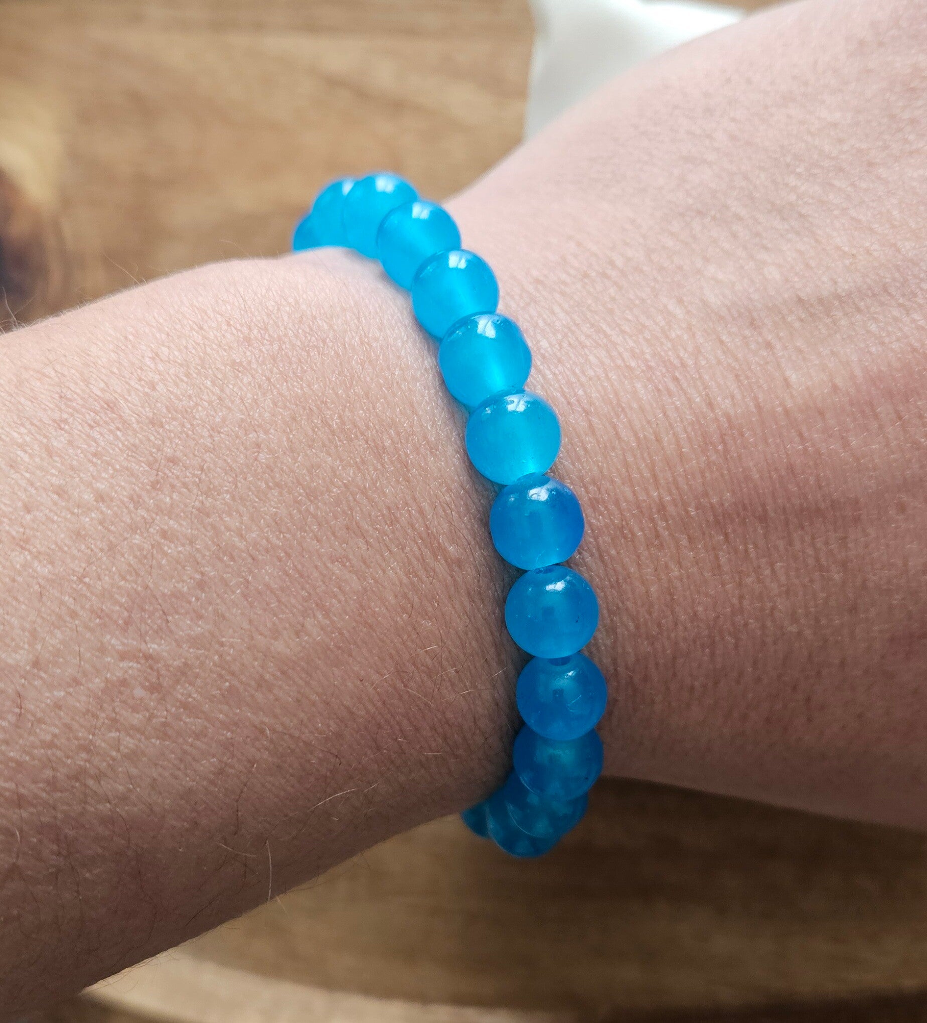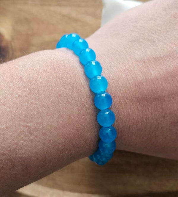 Bracelet en perles bleu turquoise 8mm, fait main avec soin.