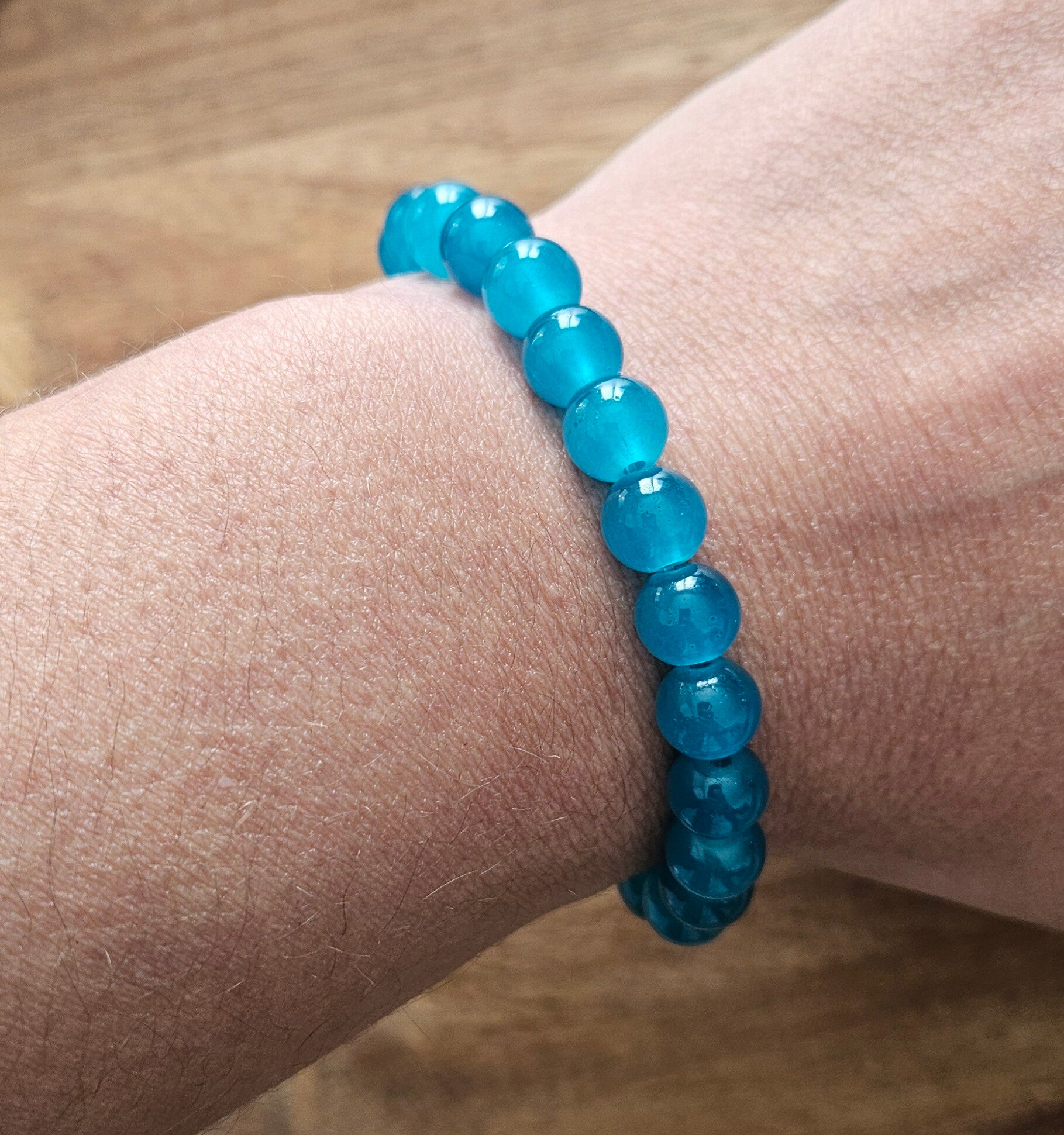 Bracelet en perles bleu lagon 8mm, fait main avec soin.
