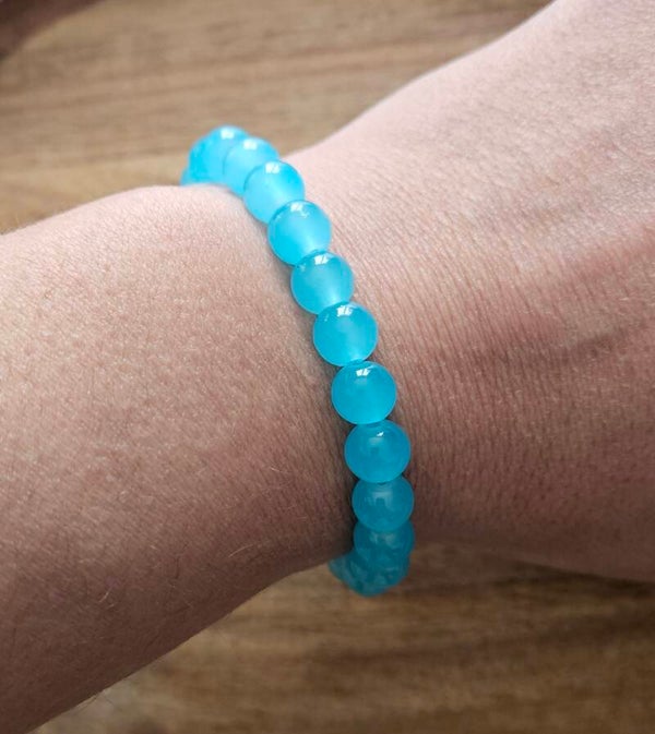 Bracelet en perles bleu turquoise clair 8mm, fait main avec soin.
