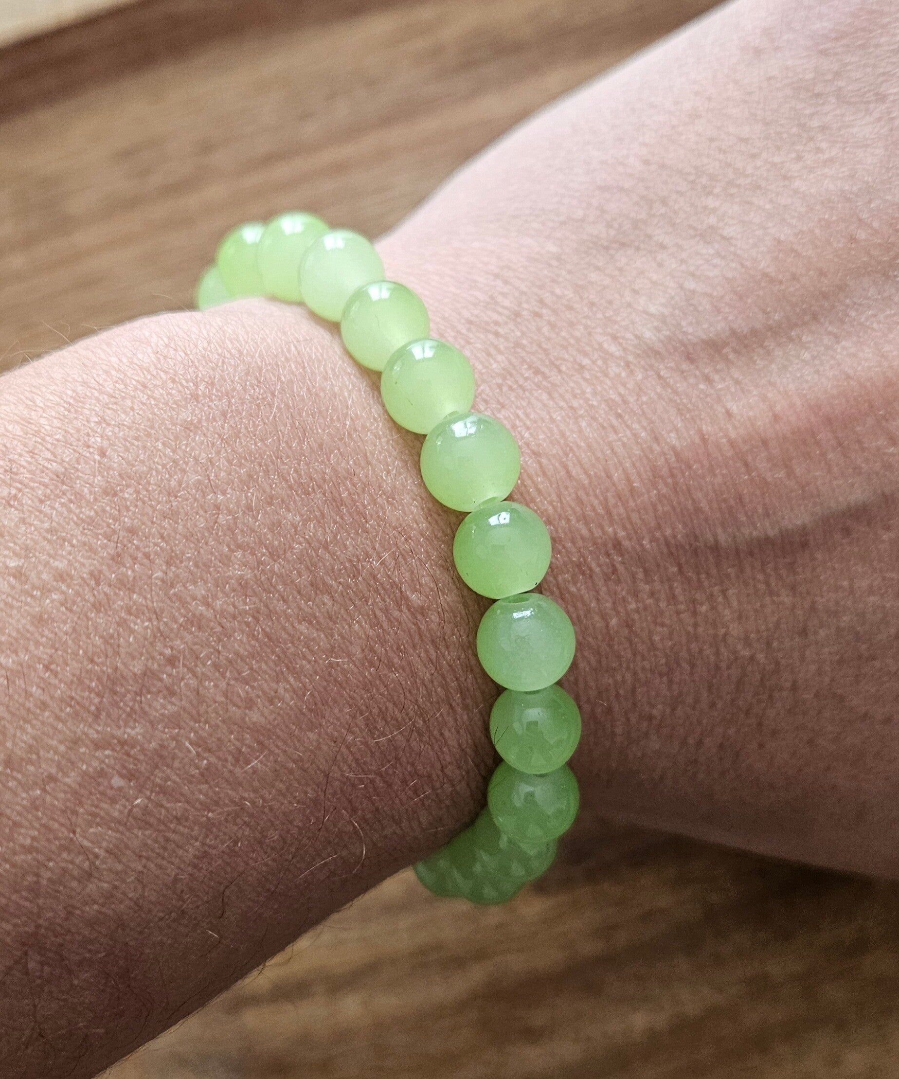 Bracelet en perles vert pomme 8mm, fait main avec soin.