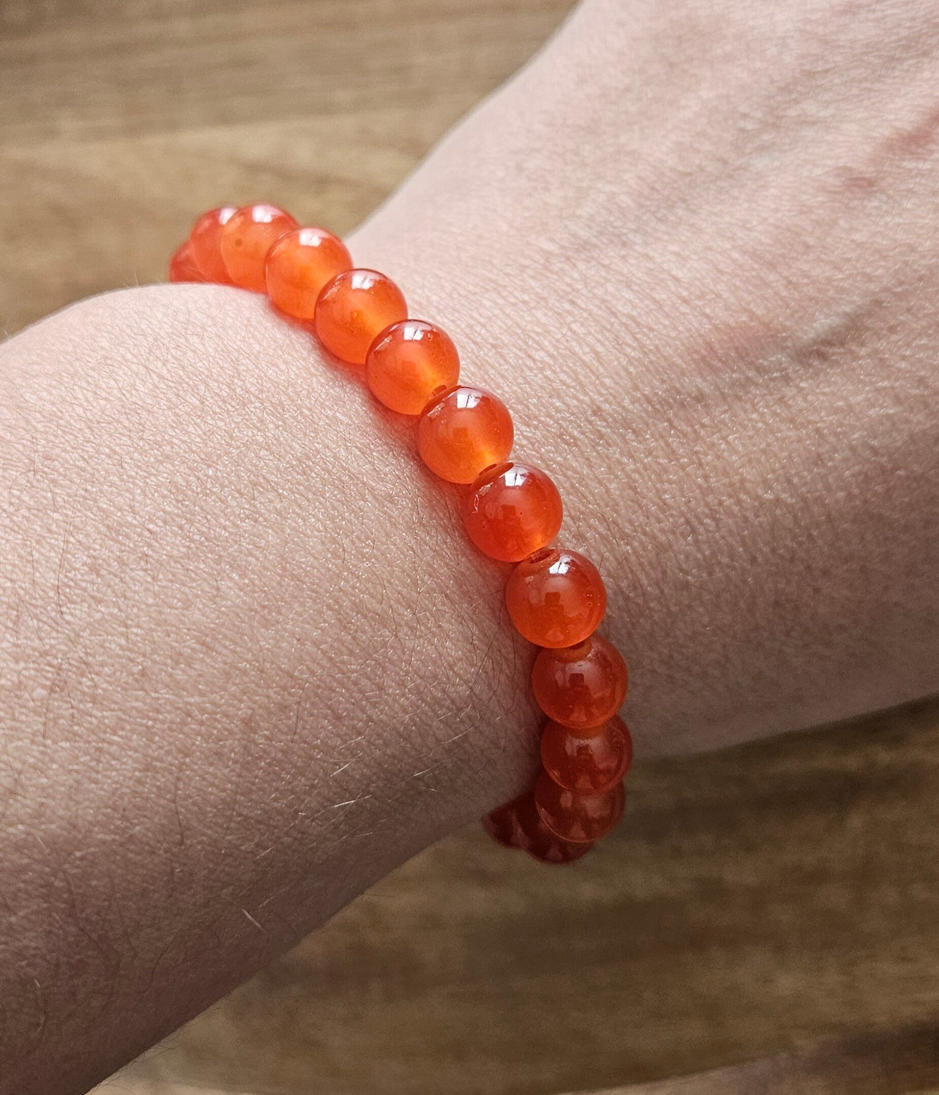 Bracelet en perles orange 8mm, fait main avec soin.