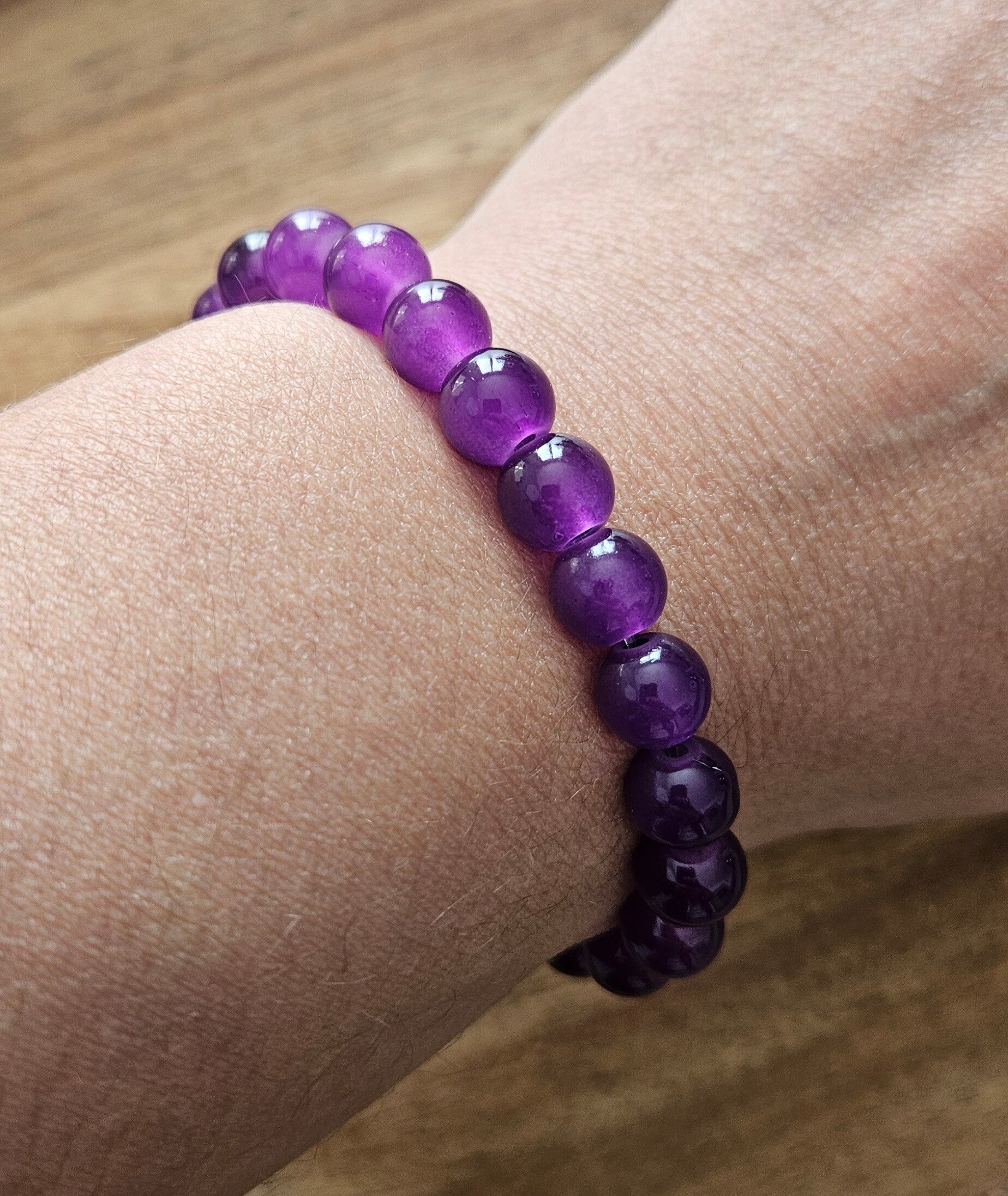 Bracelet en perles violettes 8mm, fait main avec soin.