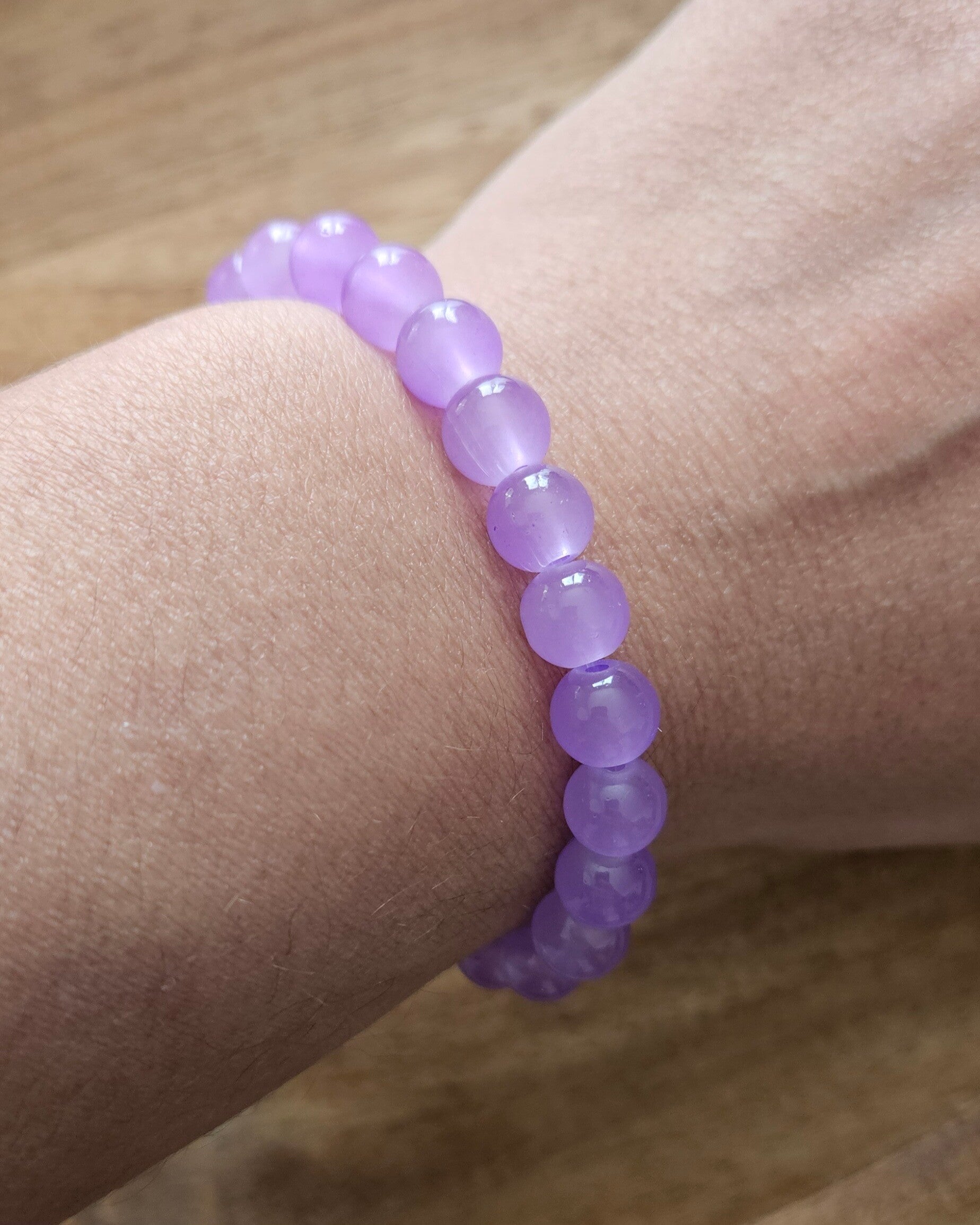 Bracelet en perles violettes claires 8mm, fait main avec soin.